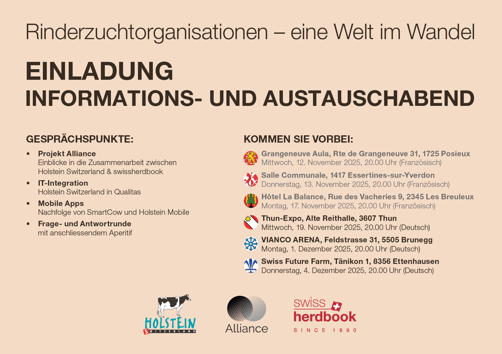 Holstein Switzerland und swissherdbook freuen sich auf viele Teilnehmende, interessante Abende und einen regen Austausch unter Züchtern.